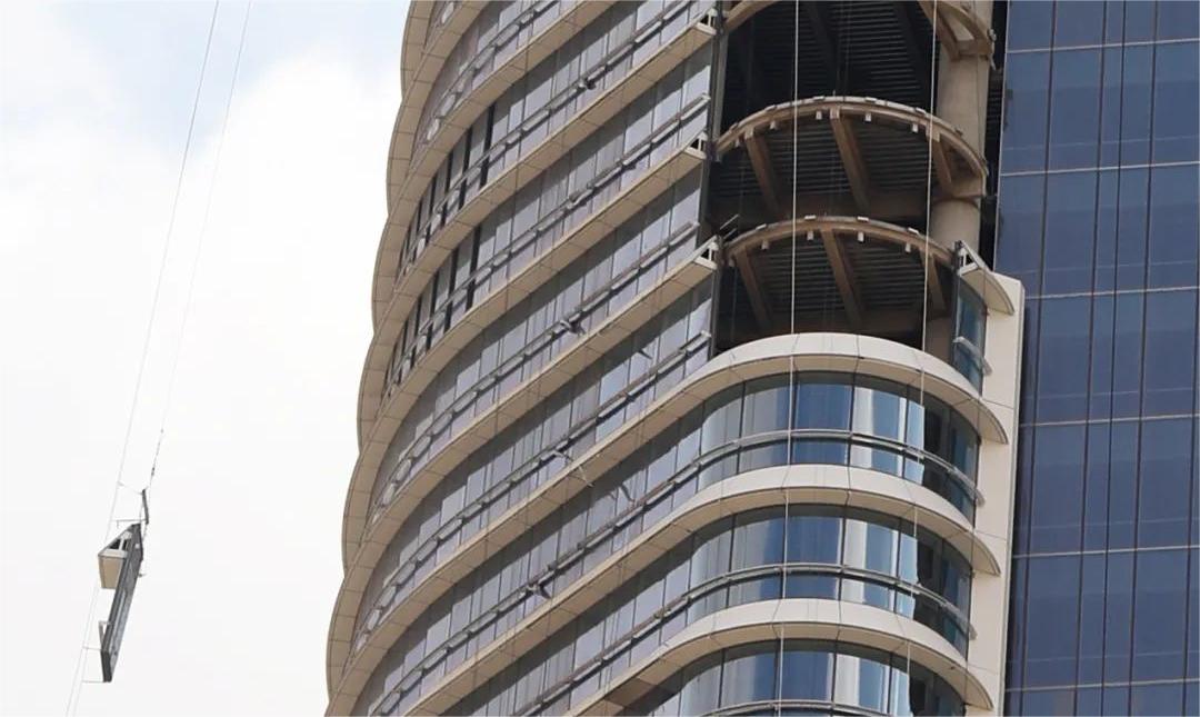 當?shù)貧夂蜓谉岣稍铮罡邭鉁乜蛇_50攝氏度,大樓幕墻需具備很強的防曬作用和耐高溫性能。塔樓呈雙半圓筒狀體外觀構造,配以橫向遮陽和雙曲拉鏈梁的裝飾鋁單板,猶如古埃及女神瓦吉特的外衣。這些設計元素不僅增強實用功能,如減少直射日光和控制室內溫度,且增加了建筑的視覺吸引力,使其成為一座現(xiàn)代與傳統(tǒng)相結合的建筑。